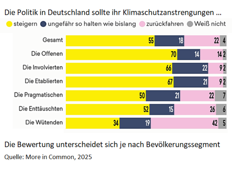 Eine repräsentative Umfrage von More in Common zeigt, dass Klimaschutz in Deutschland weiterhin breite Unterstützung findet, obwohl andere Sorgen – etwa Migration, Wirtschaftskrise, Wohnungsnot und steigende Preise – im Alltag dominieren.